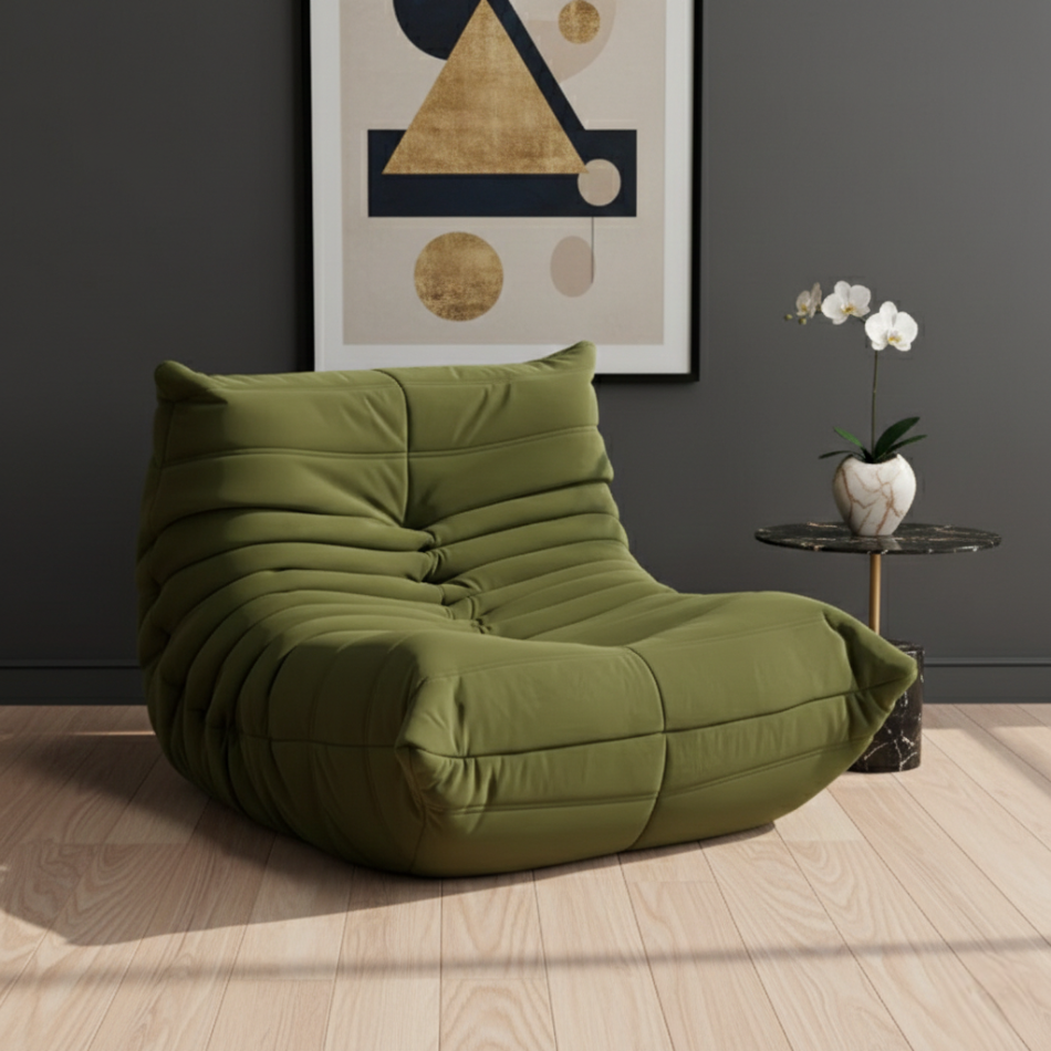 Inspiré des assises basses contemporaines, il se distingue par ses lignes épurées, son volume accueillant et son rembourrage enveloppant qui assure un excellent maintien du dos.
